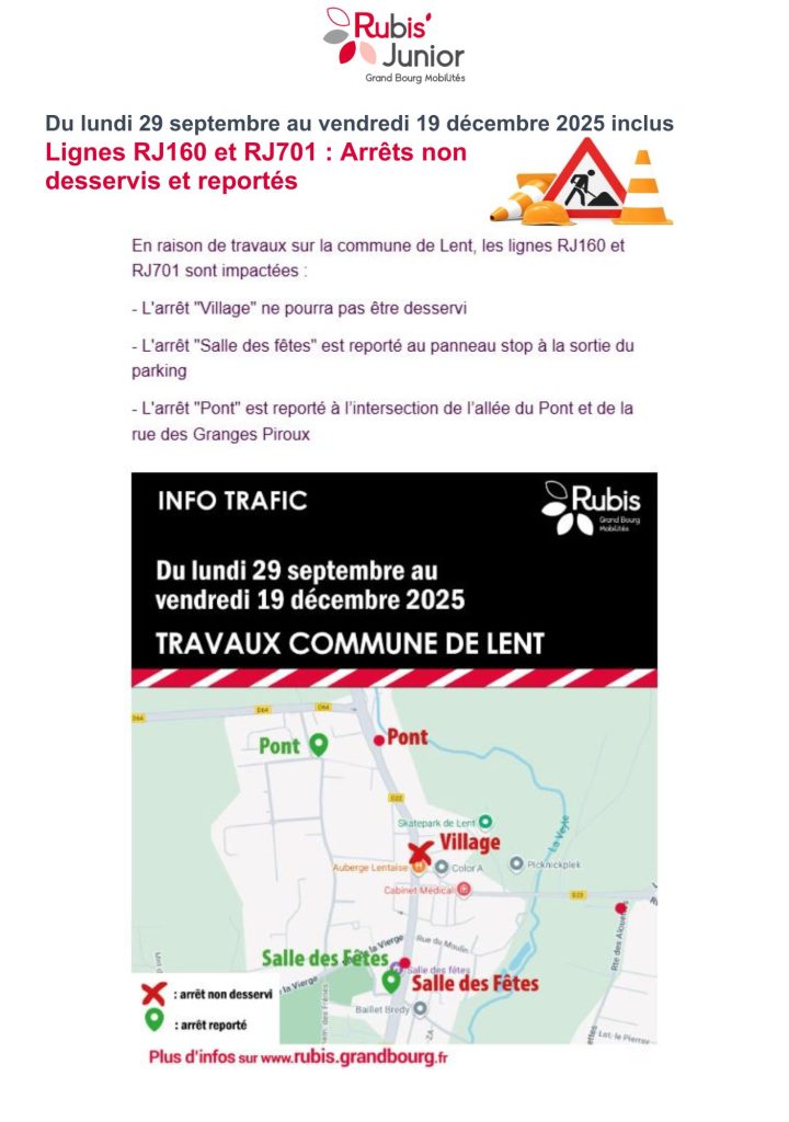 LIGNE RUBIS’JUNIOR RJ160 et RJ701 : ARRETS NON DESSERVIS ET REPORTÉS