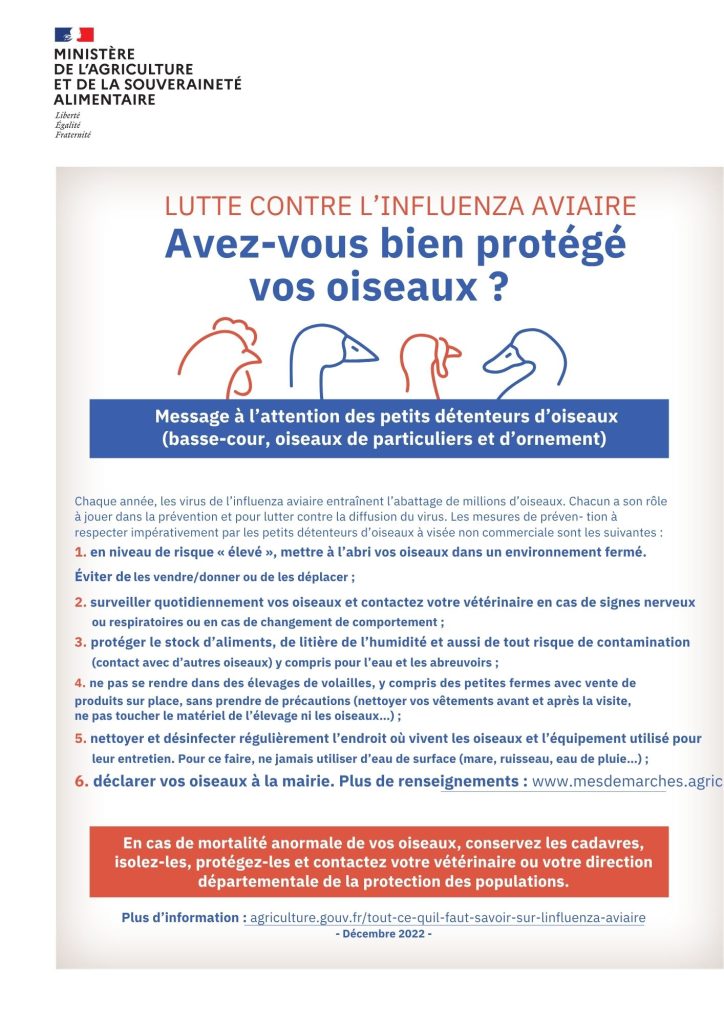 PRÉFECTURE DE L’AIN – INFLUENZA AVIAIRE – RISQUE ÉLEVÉ