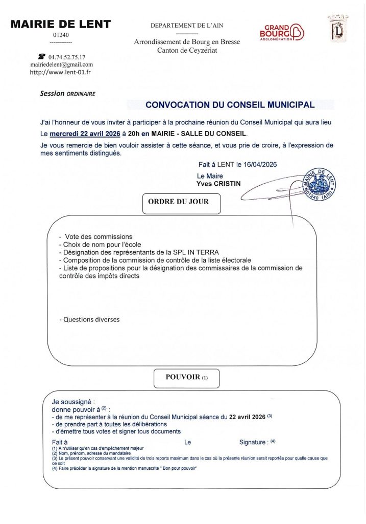 Convocation Conseil Municipal du 22-04-2026
