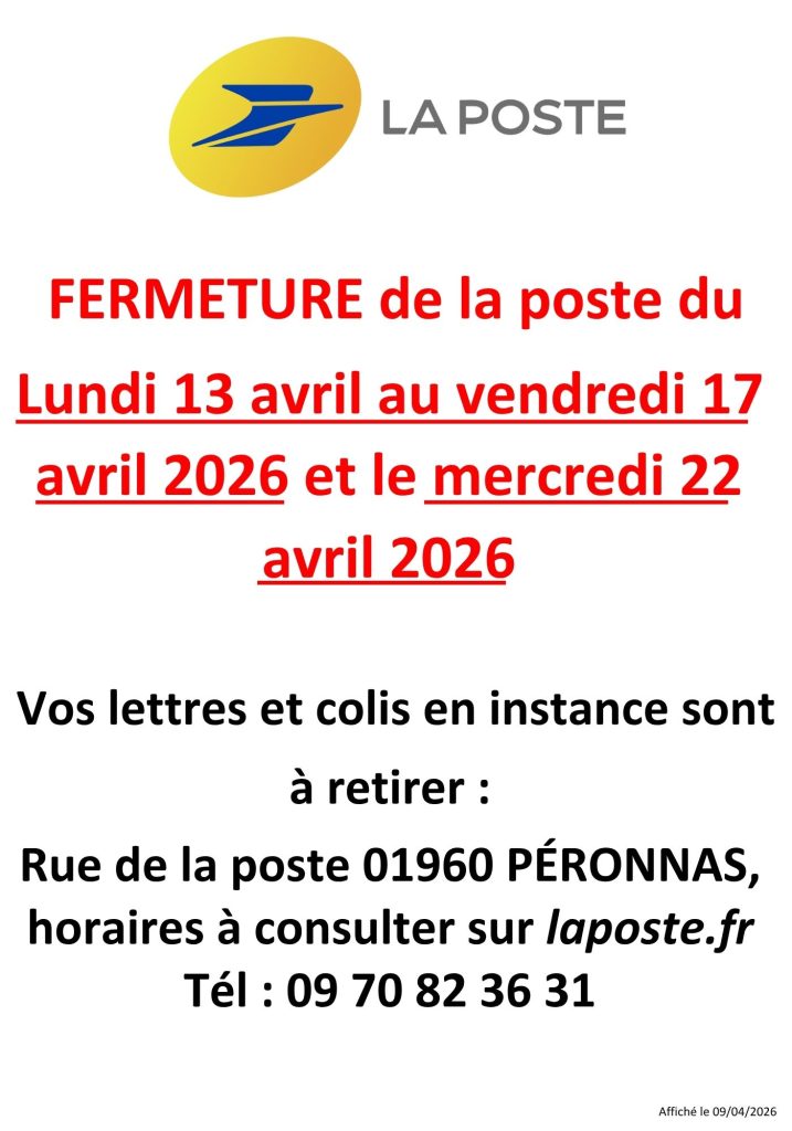 FERMETURE DE LA POSTE COMMUNALE