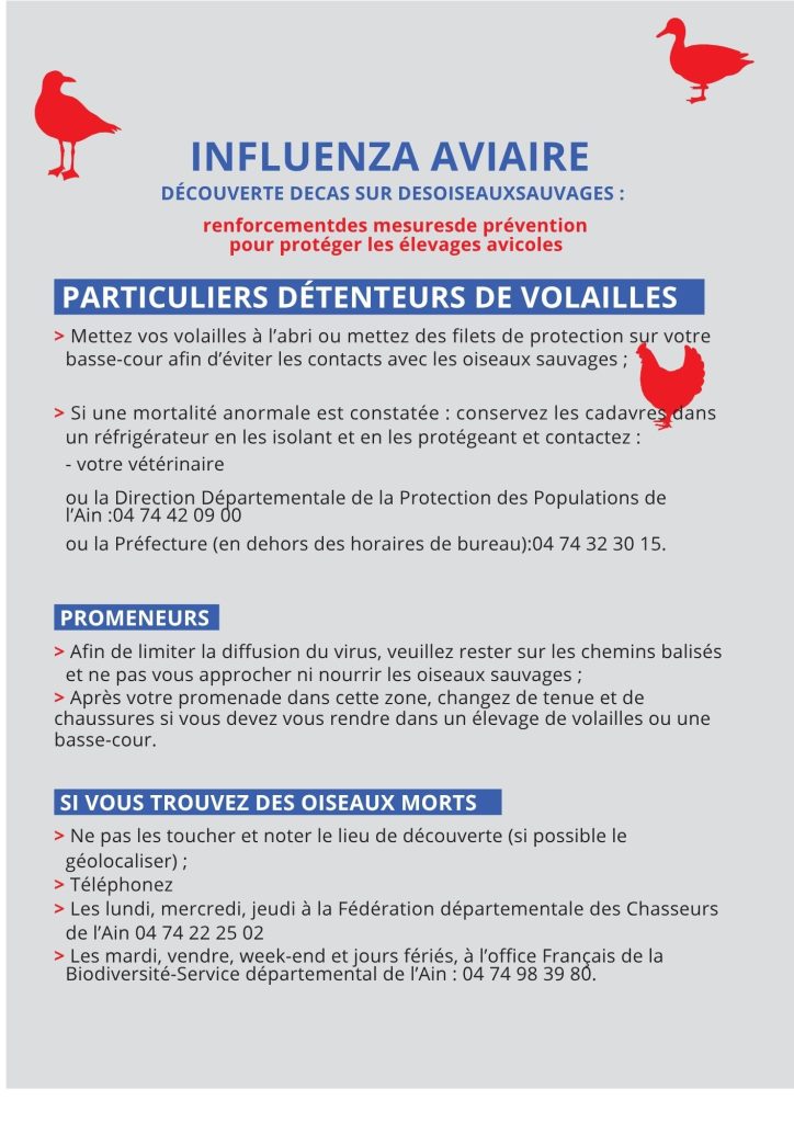 PRÉFECTURE DE L’AIN – INFLUENZA AVIAIRE – RISQUE ÉLEVÉ
